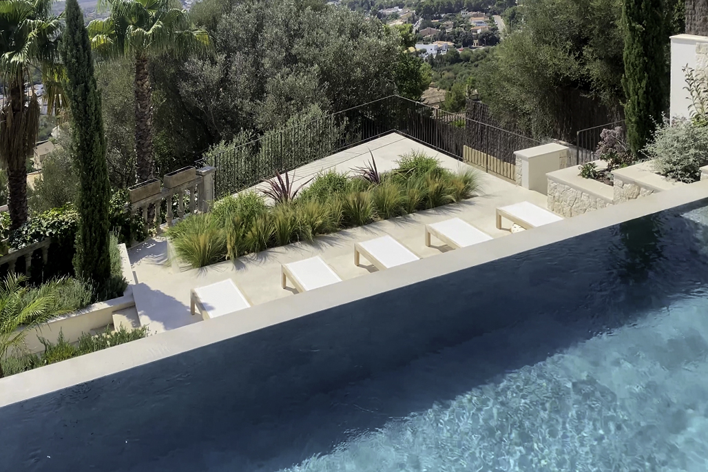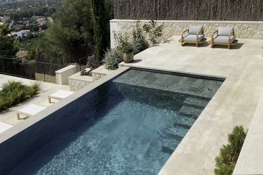 Surrounded by natural stone terraces and Mediterranean planting, the pool becomes part of the landscape itself — both a visual focal point and a place of quiet retreat. It’s a space designed for living well.